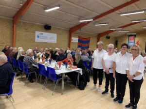Der blev snakket og hygget på ved alle bordene. Musikken blev leveret af gruppen Så for Søren.